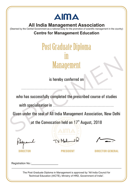 PGDM is a specially designed management programme meeting the need of flexibility and convenience through virtual classes, online library and high tech support along with conventional face to face teacher and student interaction. It provides participants with opportunity to experience latest management trends through interaction with industry leaders and academia at various AIMA conventions, business summits and forums.